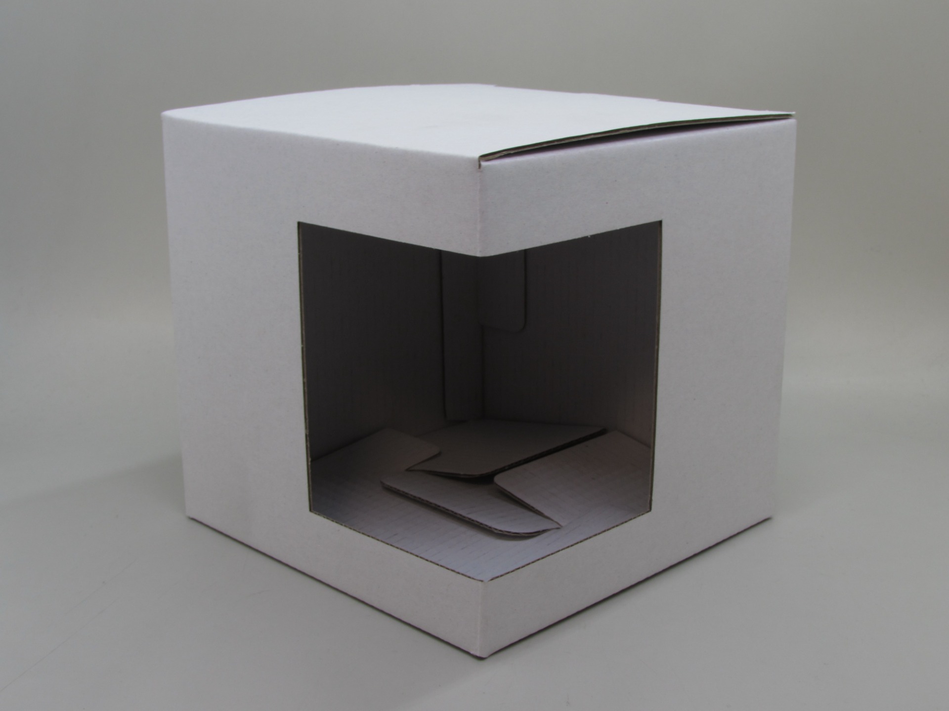 Krabička na hrnky s oknem z bílé mikrovlny. Krabičku lze potisknout od 1 barvy po